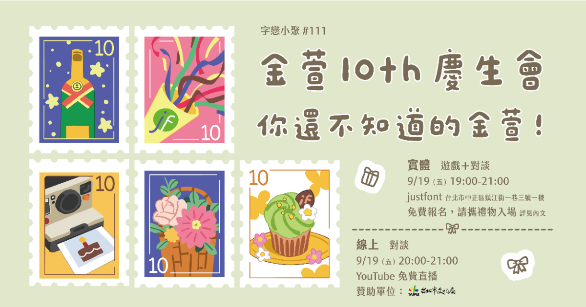 ⚠️ 因實體活動座位有限,若報名實體活動未到,將被 justfont 列入板凳名單,未來半年不得報名 justfont 的實體活動(如字戀小聚、jf 外帶字取、字體研修所等)!若不克參加,最晚請於活動前一日自行取消報名,釋放名額給想參加的朋友。